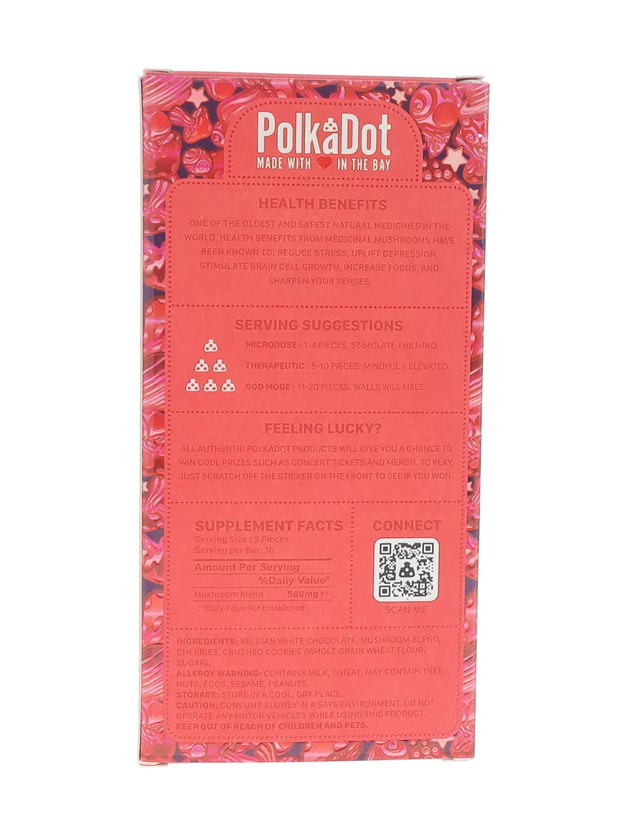 Order Cherry Groove PolkaDot Mushroom Belgian Milk Chocolate from Eat Mushroom Chocolate for a flavorful and uplifting experience today!