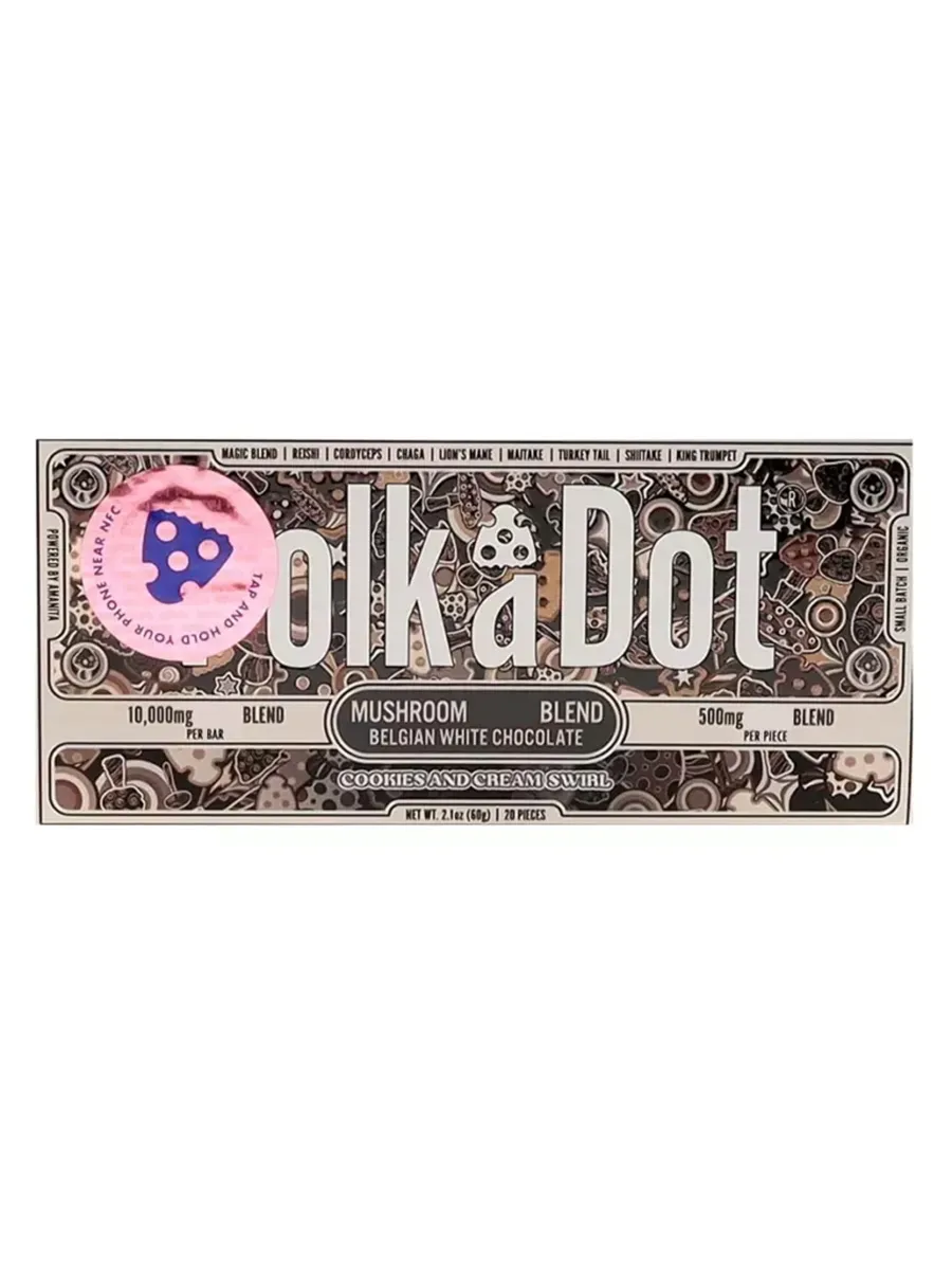Treat yourself to the enchanting blend of flavors in Cookies & Cream Swirl PolkaDot Mushroom Belgian White Chocolate. Savor the smooth, creamy swirls of premium Belgian white chocolate, perfectly paired with the classic cookies and cream combination. Infused with a soft touch, this irresistible treat offers a uniquely indulgent experience that enhances your chocolate trip to new heights. Savor the flavor in every delectable bite.