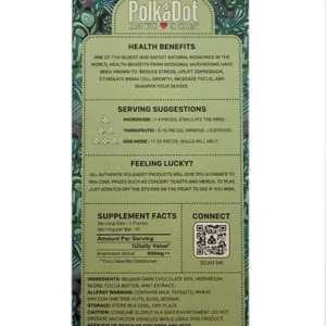 Enhancing Benefits: The mix of smooth white chocolate and mushrooms provides a sense of relaxation and happiness, making this nostalgic treat even more indulgent. This chocolate bar can help enhance mood, foster relaxation, and provide a sense of calm, making it ideal for unwinding or enhancing social experiences.