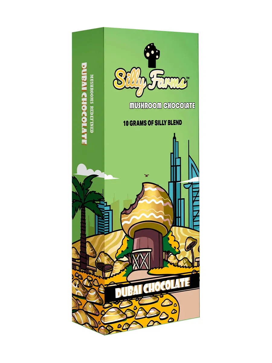 Enhance your senses with Dubai Chocolate Silly Farms Mushroom Chocolate 10G – available now at Eat Mushroom Chocolate!