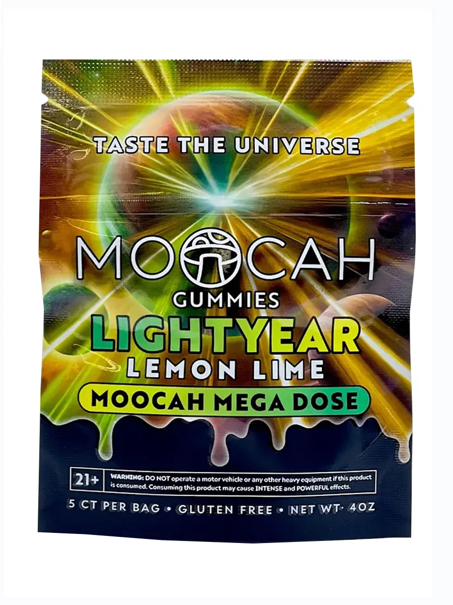 Harness the speed of light and the flavor of stars with Lightyear Lemon Lime Moocah Mega Dose Gummies — your launchpad to new dimensions of thought and sensation.