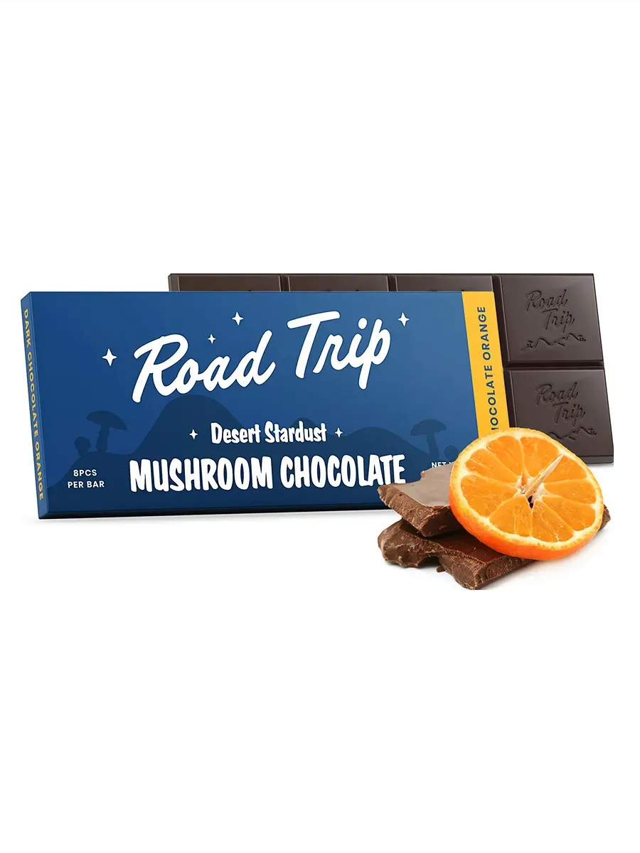 Order your Dark Chocolate Orange Road Trip Desert Stardust Bar today at Eat Mushroom Chocolate and experience enhanced indulgence.