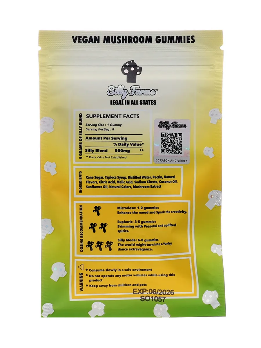 Order your Pineapple Ghost Pepper Silly Farms Vegan Mushroom Gummies 4000MG and elevate your experience with these high-quality, potent, and delicious gummies. Enjoy the blend of natural ingredients and the powerful effects of the Silly Blend for a truly otherworldly journey.