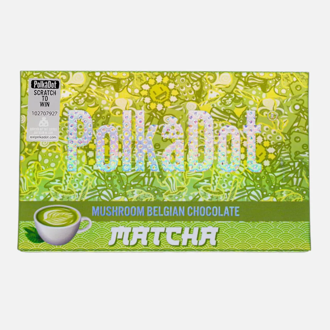 Polkadot Matcha White Chocolate Bar is for those who seek a moment of peace in every bite, those who appreciate the gentle strength of matcha paired with the sweetness of chocolate. It’s a testament to the art of chocolate making, elevated by the curiosity and wonder of magic mushrooms. Whether you’re a matcha aficionado or a chocolate lover looking for something new, this bar promises a serene, enriching experience that’s as memorable as it is delicious.