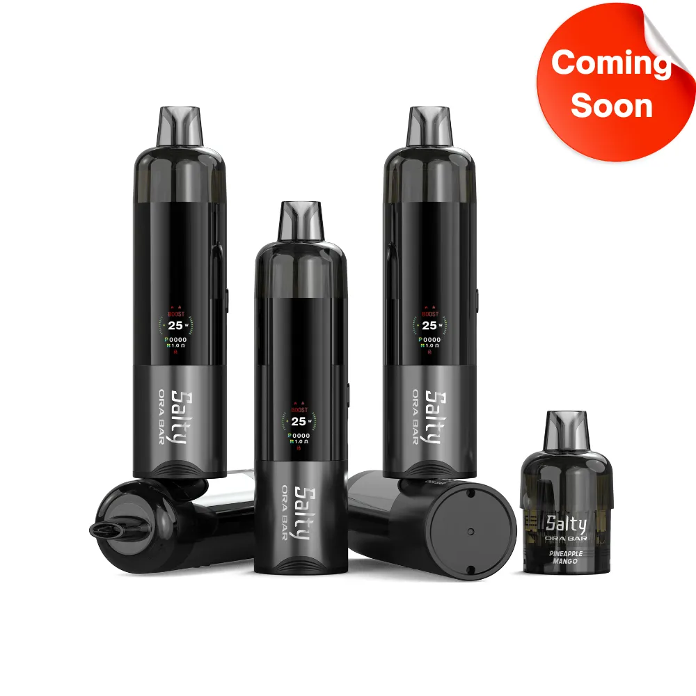 Salty Ora Bar – A high-performance prefilled pod system built for extended vaping and smart functionality. With a large 1100mAh removable battery and 18mL e-liquid capacity, this device delivers up to 30,000 puffs. Powered by a dual mesh coil (0.5Ω x2), it offers both Regular (5W–15W) and Boost (16W–25W) modes to suit your vaping preference. The smart display screen provides real-time information on power, resistance, puff count, and more. With adjustable airflow and child safety lock, the Salty Ora Bar is made for vapers who want full control in a sleek, compact design.