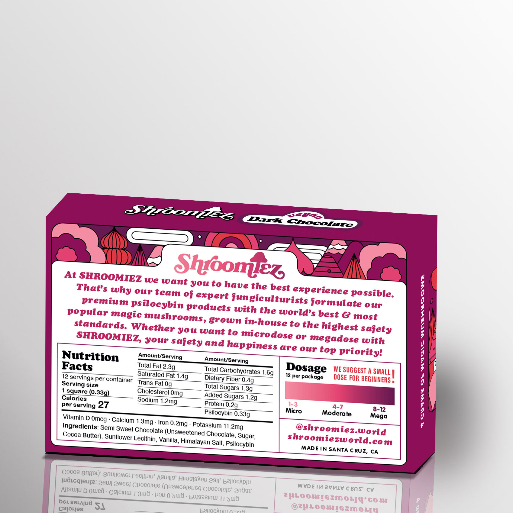 This Shroomiez vegan dark mushroom chocolate bar is guilt-free with dark chocolate and zero dairy, but don’t let that fool you; it’s still delicious. Nibble on a few squares to microdose, or keep going for a fun trip! Your experience is up to you. With Shroomiez, you can rest assured that you’re consuming a reliable dose of the best organic mushroom extracts.