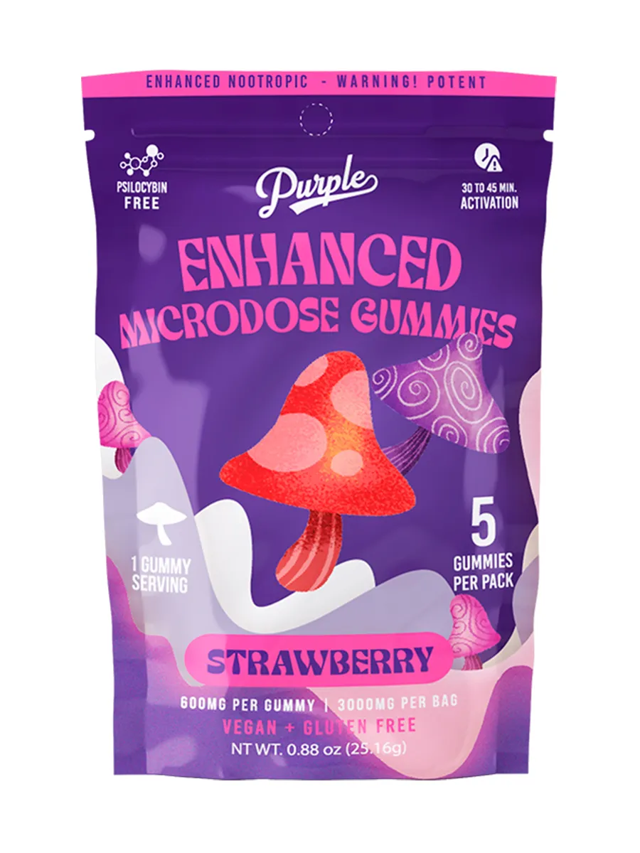 The Strawberry Purple Organics Mushroom Enhanced Microdose Gummies 5ct provide a delicious and easy way to incorporate the benefits of microdosing mushrooms into your daily routine. Whether you’re seeking enhanced focus or a gentle mood boost, these gummies offer a consistent and flavorful experience.