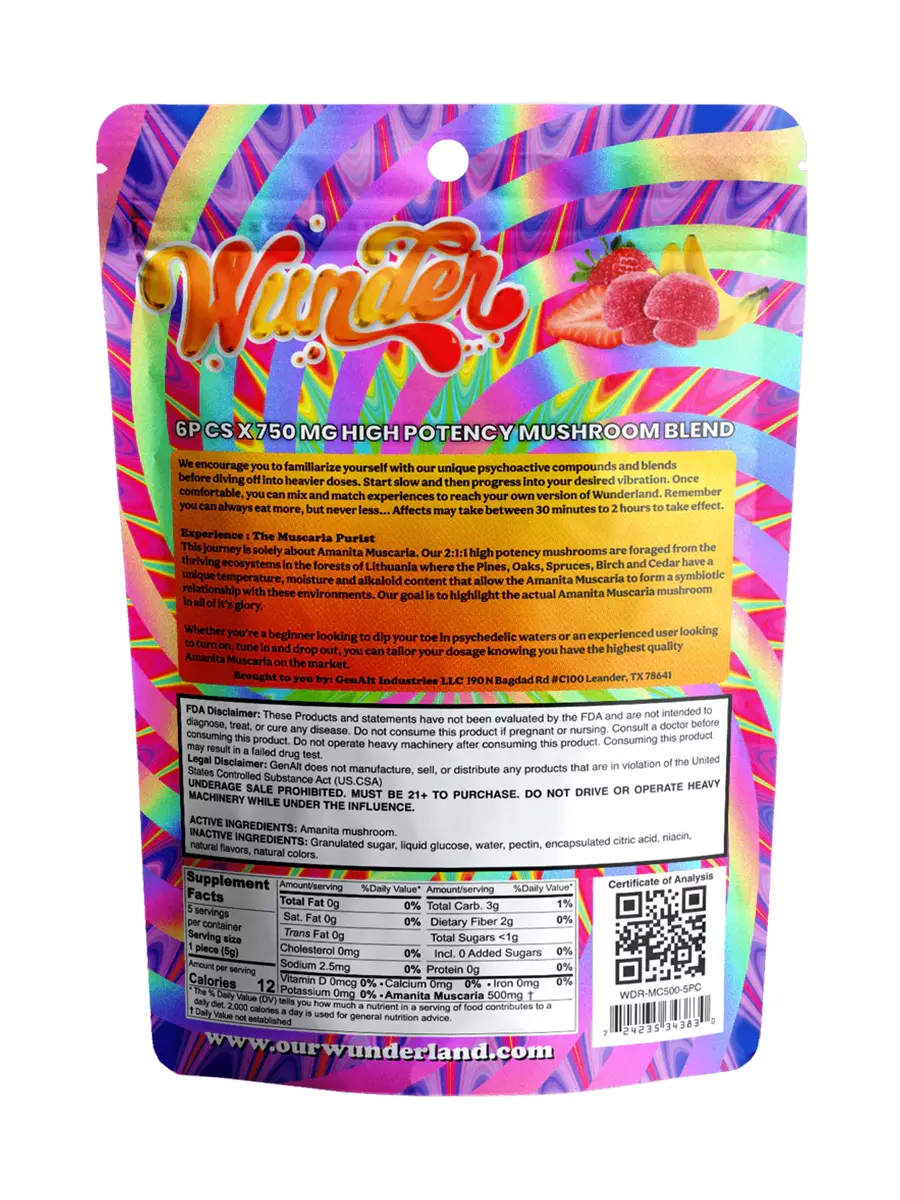 Experience the intersection of nature and science with Wunder Entheogenic Nootropic Blend Amanita Gummies 7500mg – a blend that transcends traditional boundaries, providing users with a profound and transformative macro-dose journey.